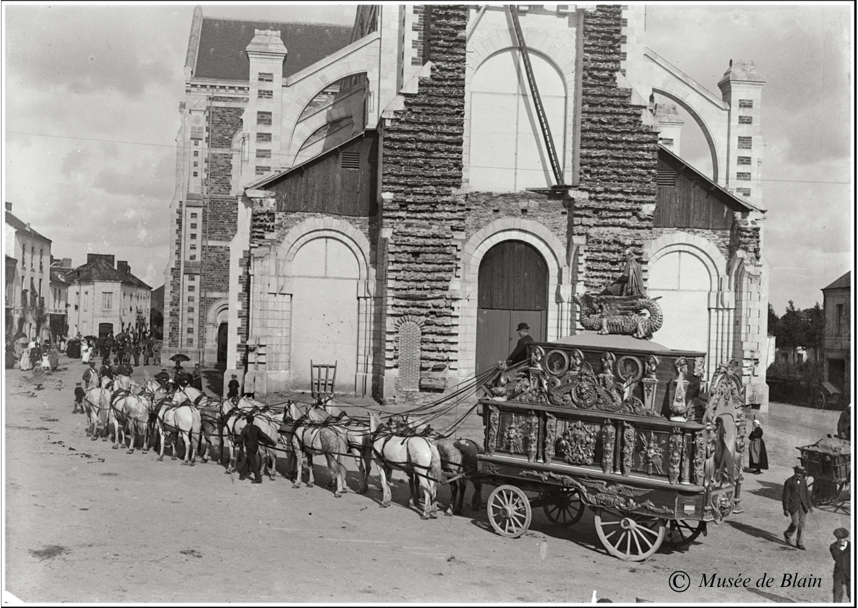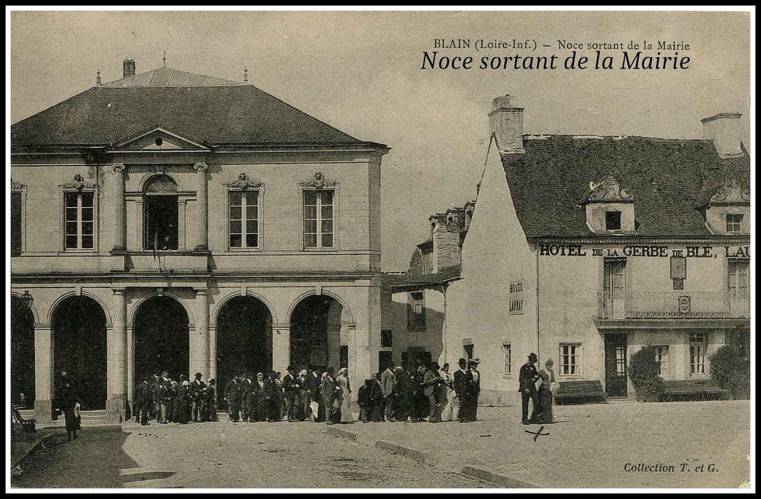 👉Ils se dirigent vers l’église de Blain. Oui, le bâtiment actuel du musée était l’ancienne marie de Blain jusqu’en 1962. Les mariés sortaient de la mairie et pouvaient se diriger directement vers l’église.