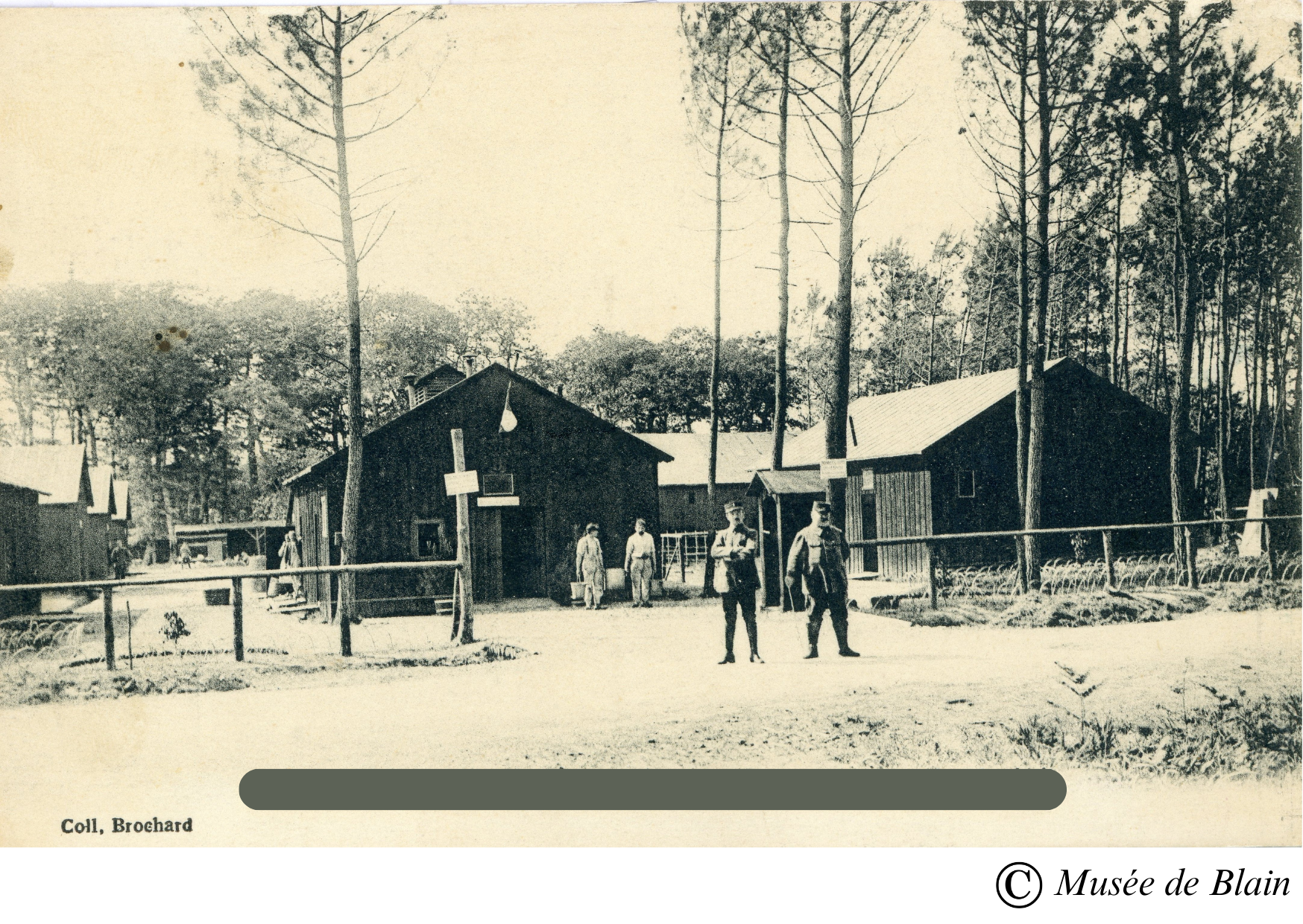👉La photo a été prise dans la forêt du Gâvre pendant la première guerre mondiale. Il s’agit du Dépôt de Néricou. Il y avait un camp de prisonniers allemands en bordure de la forêt du Gâvre, pendant la Première Guerre Mondiale. Le camp à aujourd’hui disparut. Pour en savoir plus sur le camp de Néricou, n’hésitez pas à consulter ce lien de la Bibliothèque Nationale de France (BNF).
