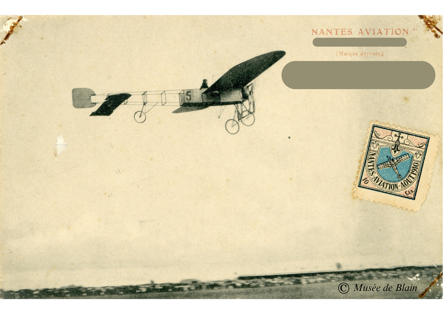 👉 Il s’agit de l’arrivée de l’aviateur Léon Morane, vainqueur de la course Nantes-Blain. La photographie à été prise le 18 Aout 1910, lors de atterrissage à l’aérodrome de Mespras.